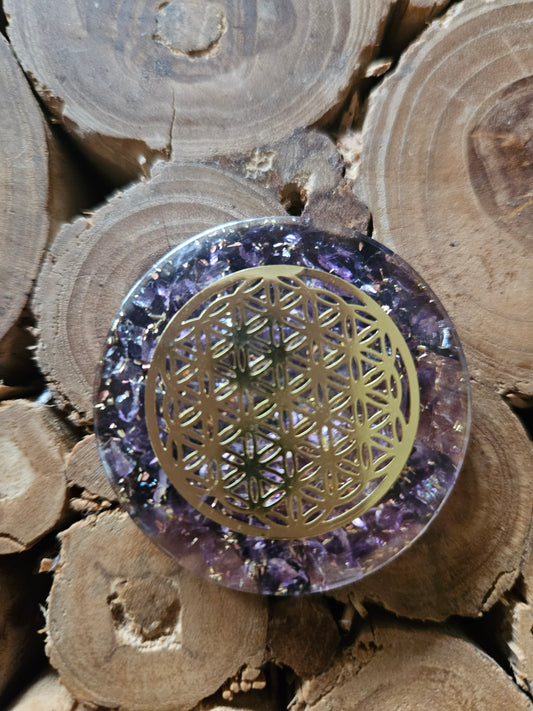 Orgon-Taler Bergkristall - Blume des Lebens 4cm