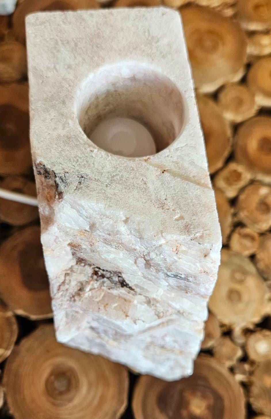 Mach diese Baryt Steinlampe zum stilvollen Mittelpunkt deiner Einrichtung. Sie kombiniert natürliche Schönheit mit einer sanften Lichtquelle und schafft eine angenehme Raumatmosphäre.