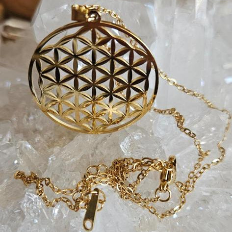 Tauche ein in die Fusion von Ästhetik und Bedeutung mit unserem authentischen goldenen Edelstahl Halskette mit Anhänger "Blume des Lebens". Dieses meisterhaft gefertigte Schmuckstück vereint nicht nur zeitlose Eleganz, sondern auch tiefe spirituelle Symbolik, um deine Persönlichkeit und Ihr Bewusstsein zu bereichern.