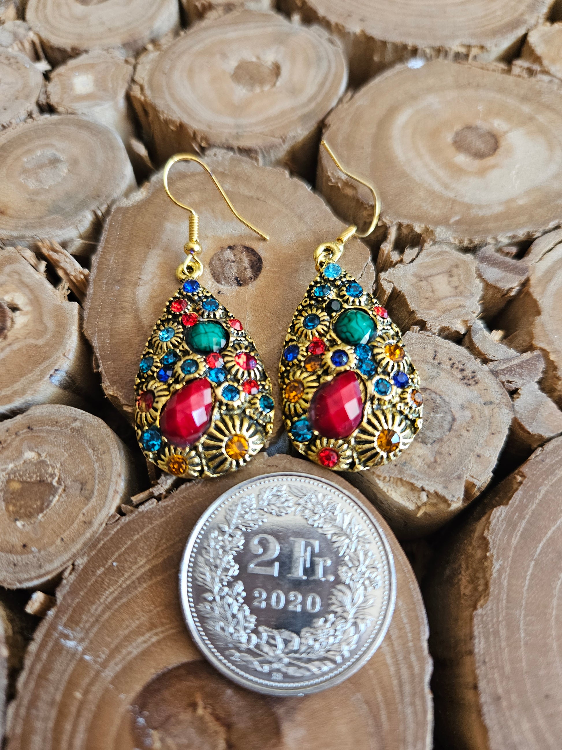 Vielfältige Farben und Formen: Die Ohrringe bestehen aus einer Fülle von Farben und Formen, die miteinander harmonieren. Die Kombination aus verschiedenen Materialien und Farbtönen verleiht den Ohrringen ein dynamisches und lebhaftes Aussehen.