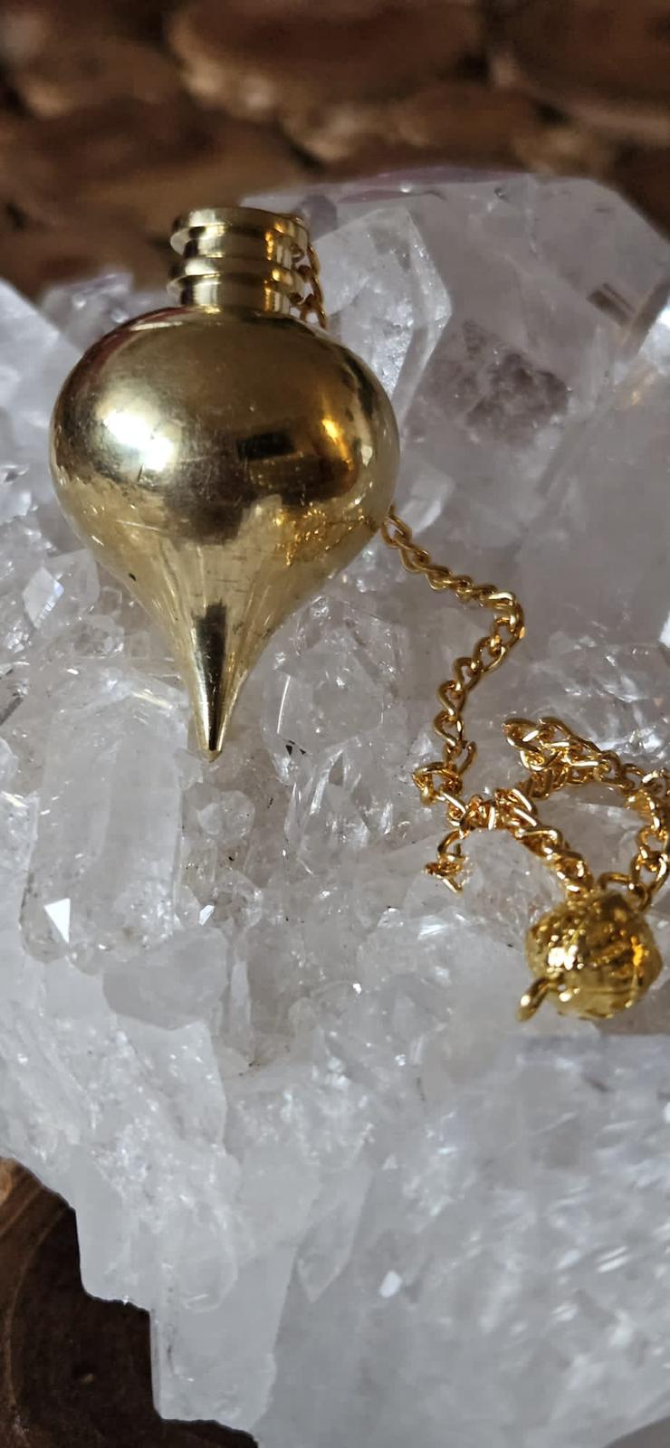 "Das Pendel – ein Symbol der Verbindung zwischen unserer inneren Intuition und den verborgenen Kräften des Universums. In seinen schwingenden Bewegungen finden wir eine tiefe Schwingung. Es ist ein Werkzeug, das uns hilft, unsere innersten Fragen zu beantworten und in Einklang mit unserer Seele zu treten. Das Pendel öffnet Türen zu verborgener Weisheit und leitet uns auf unserem spirituellen Weg. Lass dich von der sanften Bewegung des Pendels führen und erkunde die Mysterien des Universums, während du deine spirituelle Reise fortsetzt."