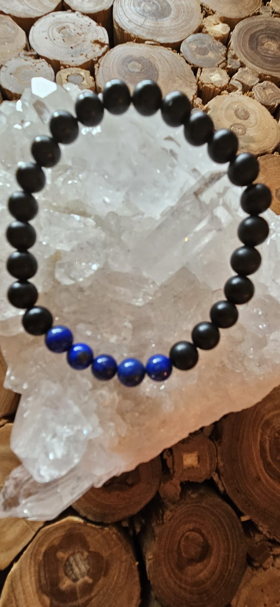 Das Armband vereint die tiefen und dunklen Reflexionen des Obsidians mit dem königlichen Blau des Lapislazuli, um eine kraftvolle Verbindung zur inneren Stärke, Weisheit und Selbstausdruck zu schaffen. Es kann als Symbol für die Reise zur Selbstentdeckung und spirituellen Erkenntnis betrachtet werden.Die mystische Aura des Obsidians
